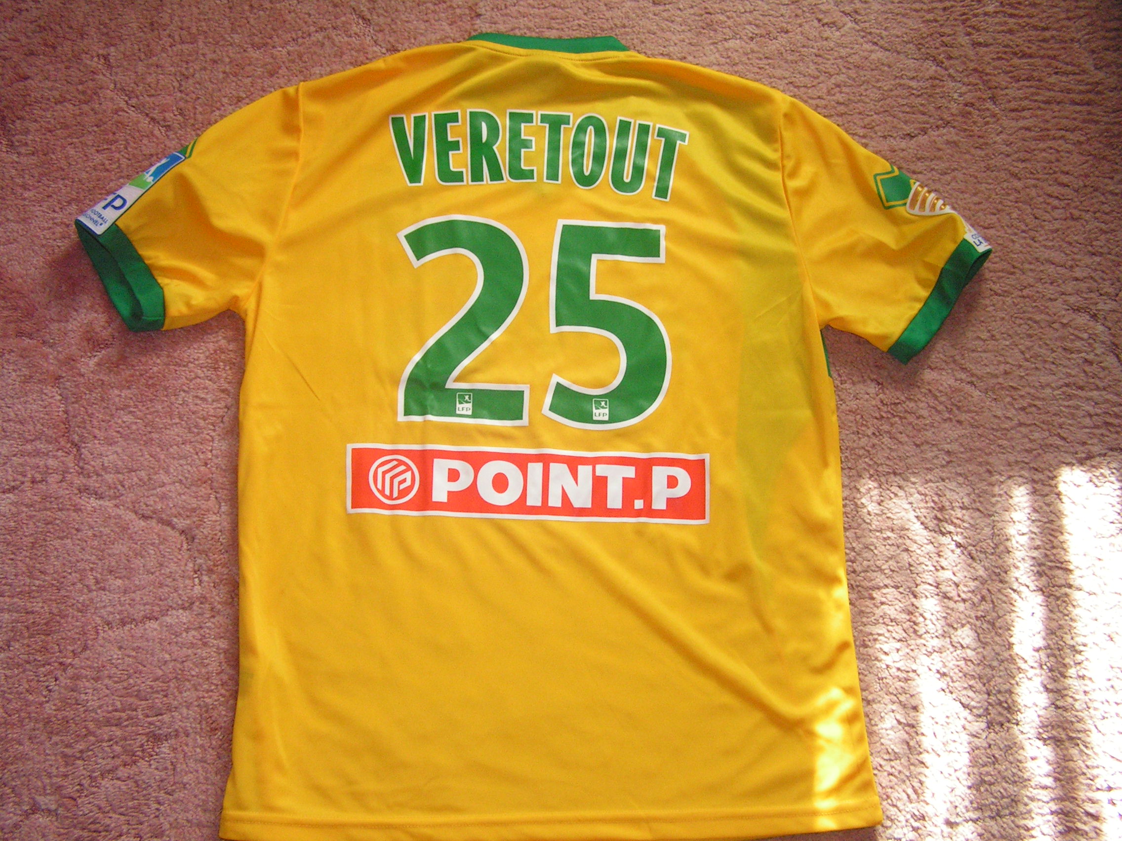 Arrière du maillot de VERETOUT porté lors de la rencontre ANGERS-NANTES, en coupe de la Ligue 2013