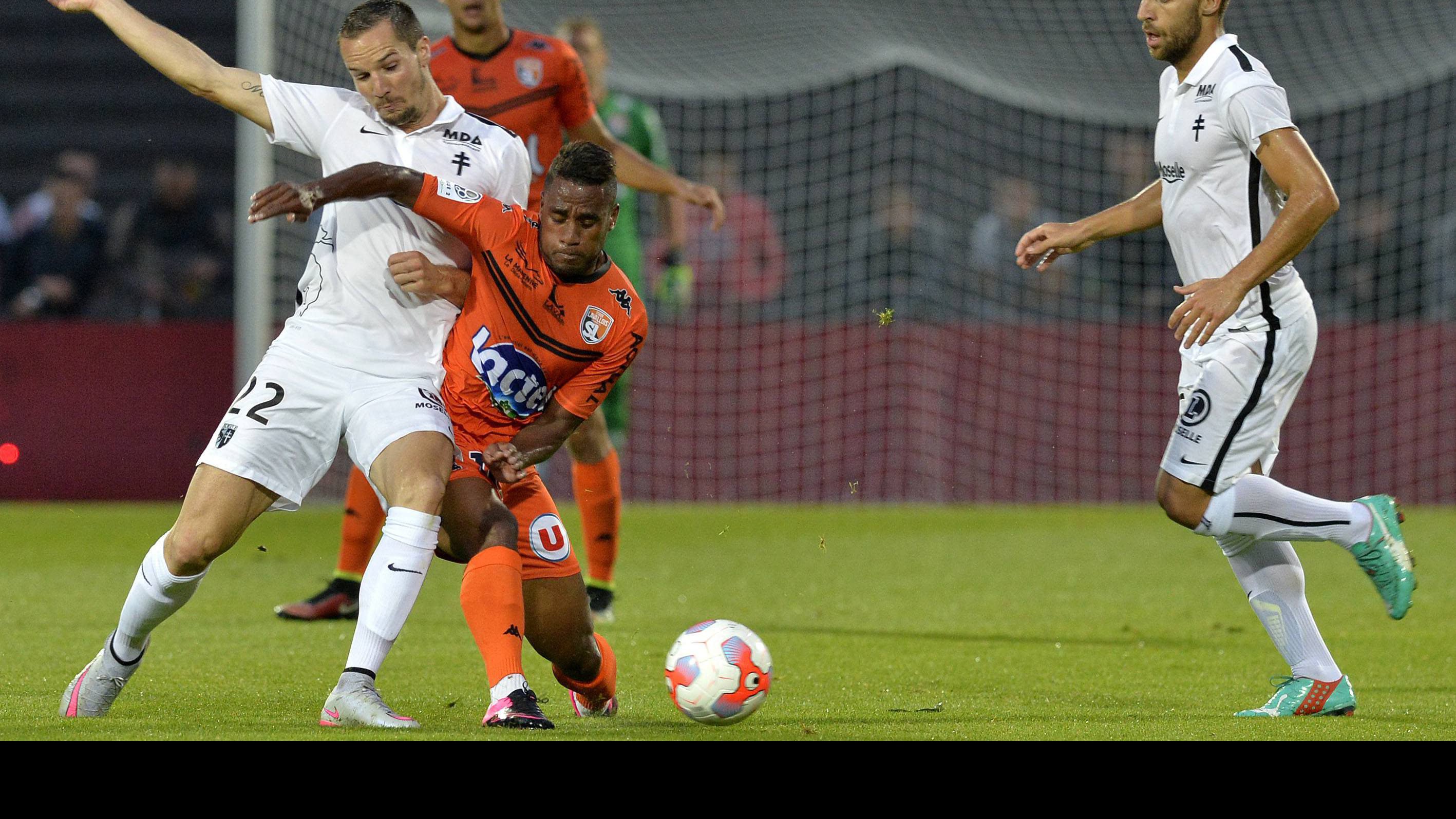Kevin LEJEUNE qui porte le même maillot, aux prises avec Cesar ZEOULA lors de la rencontre