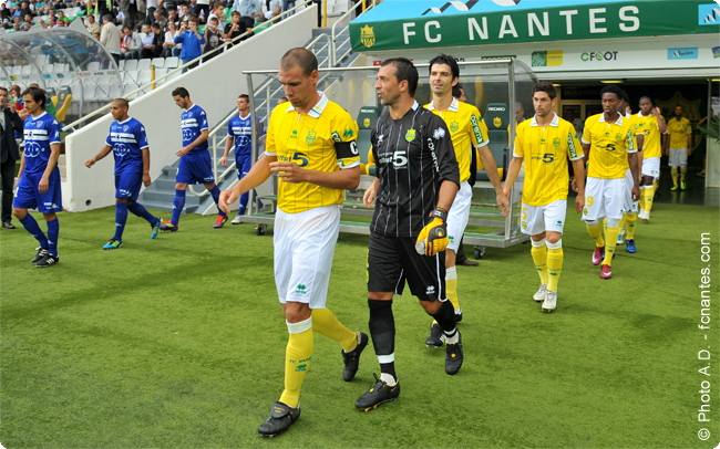 Les joueurs nantais à leur entrée sur la pelouse de la Beaujoire, lors de la rencontre face à BASTIA