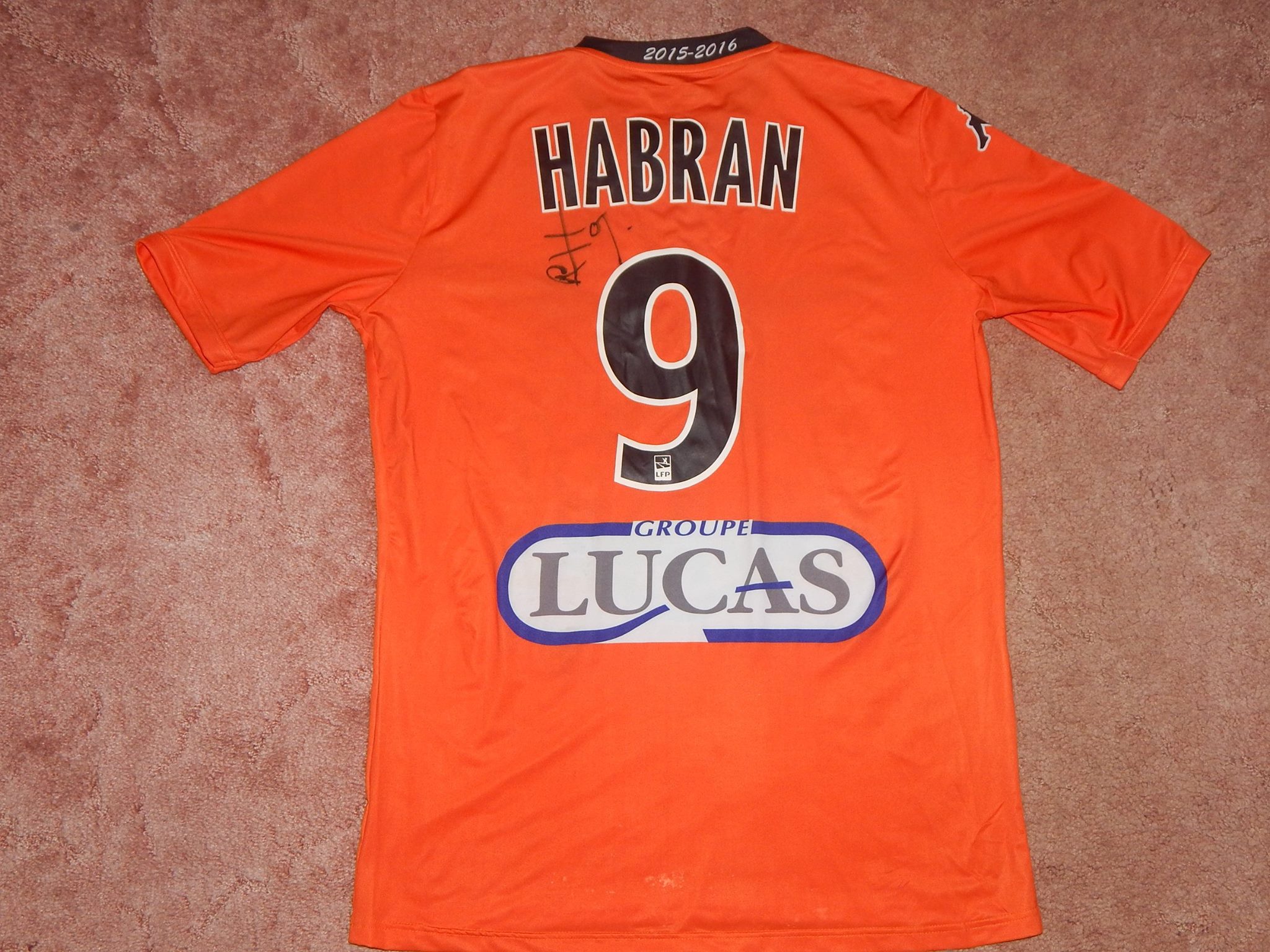 Arrière du maillot porté par Romain HABRAN lors de la rencontre de ligue 2 LAVAL-NIMES, saison 2015-2016