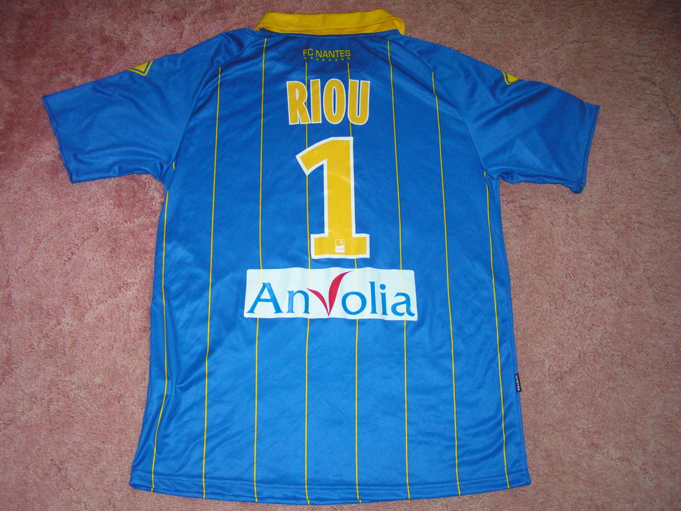 Arrière du maillot porté par RIOU lors de la rencontre GUINGAMP-NANTES, saison 2011-2012