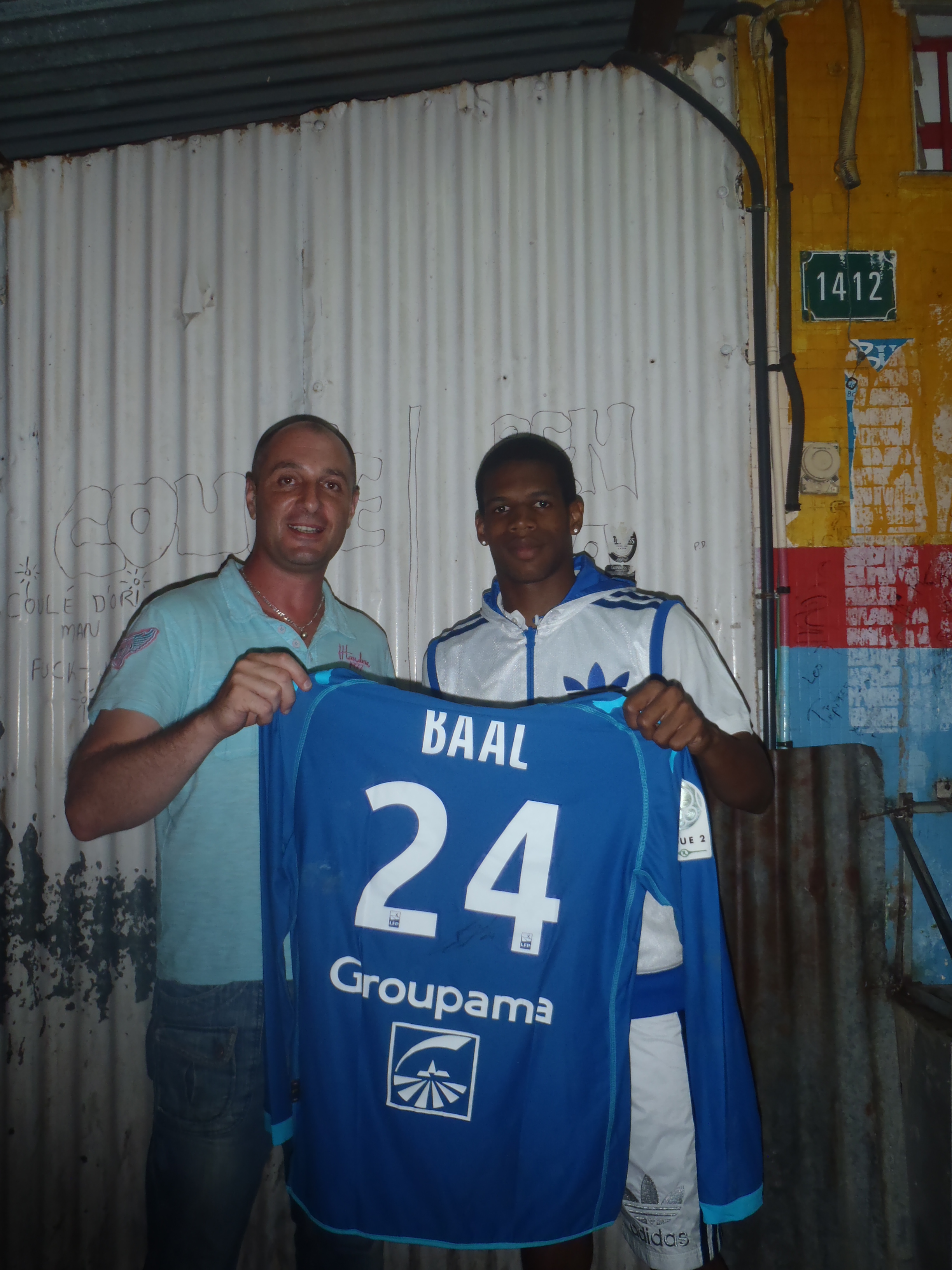 Ludovic BAAL qui me remet son maillot à CAYENNE.
