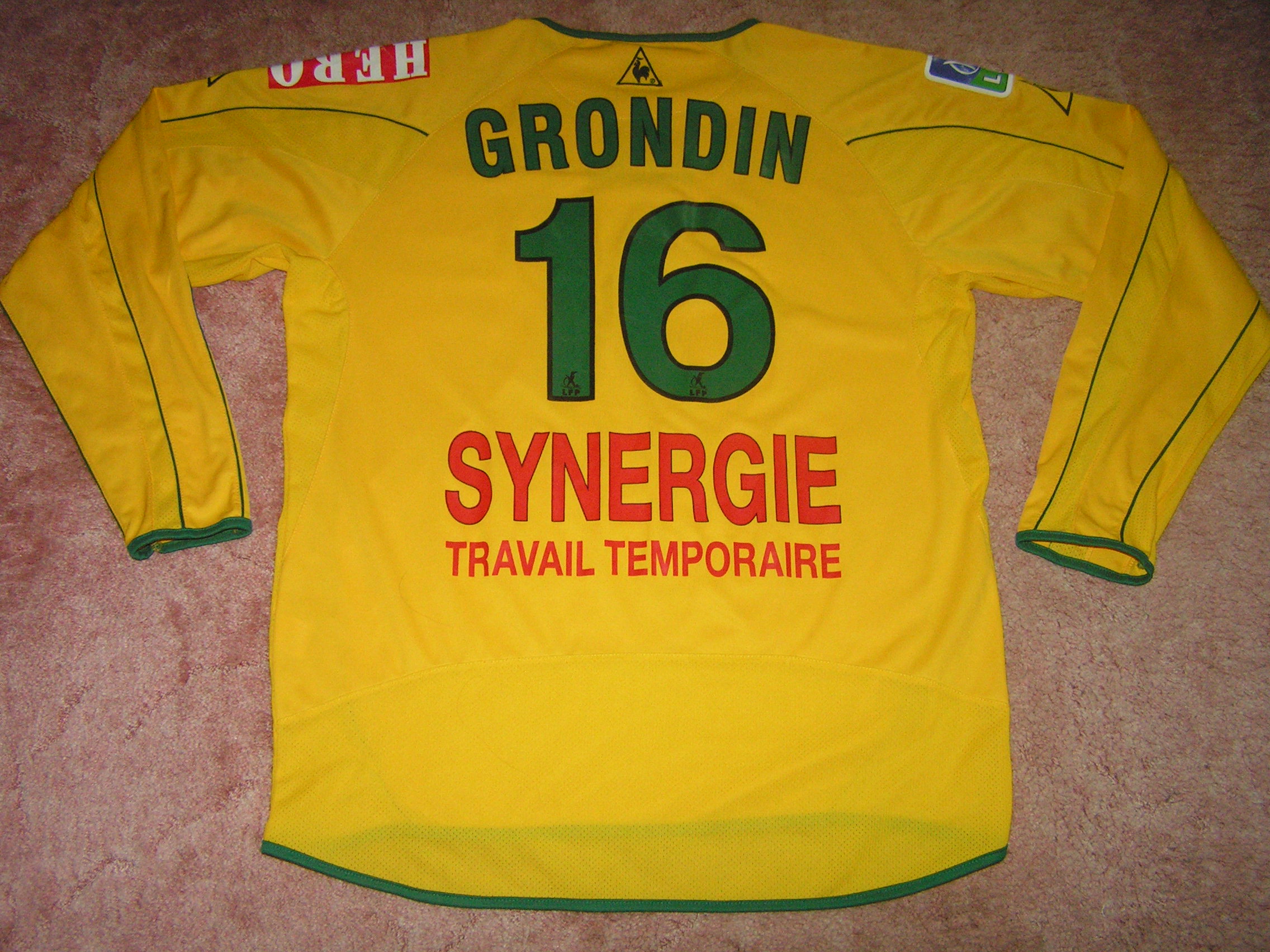 Arrière d'un maillot porté par Willy GRONDIN avec NANTES lors de la saison 2003-2004