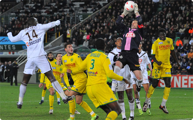 Les joueurs nantais en action de match dans la surface Bordelaise le 21 janvier 2009