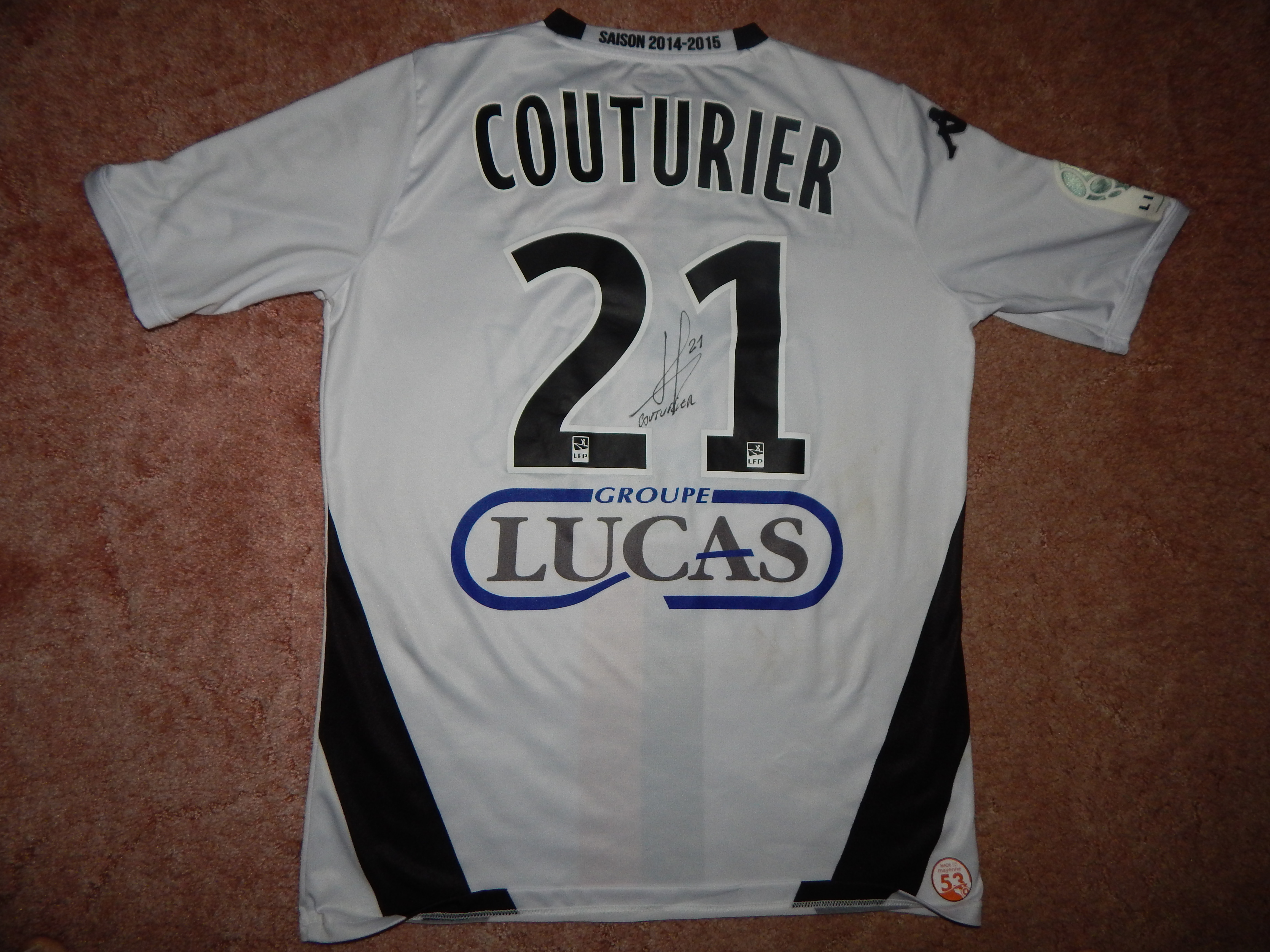 Arrière du maillot porté par Malik COUTURIER, porté lors de la rencontre TROYES-LAVAL, saison 2014-2015