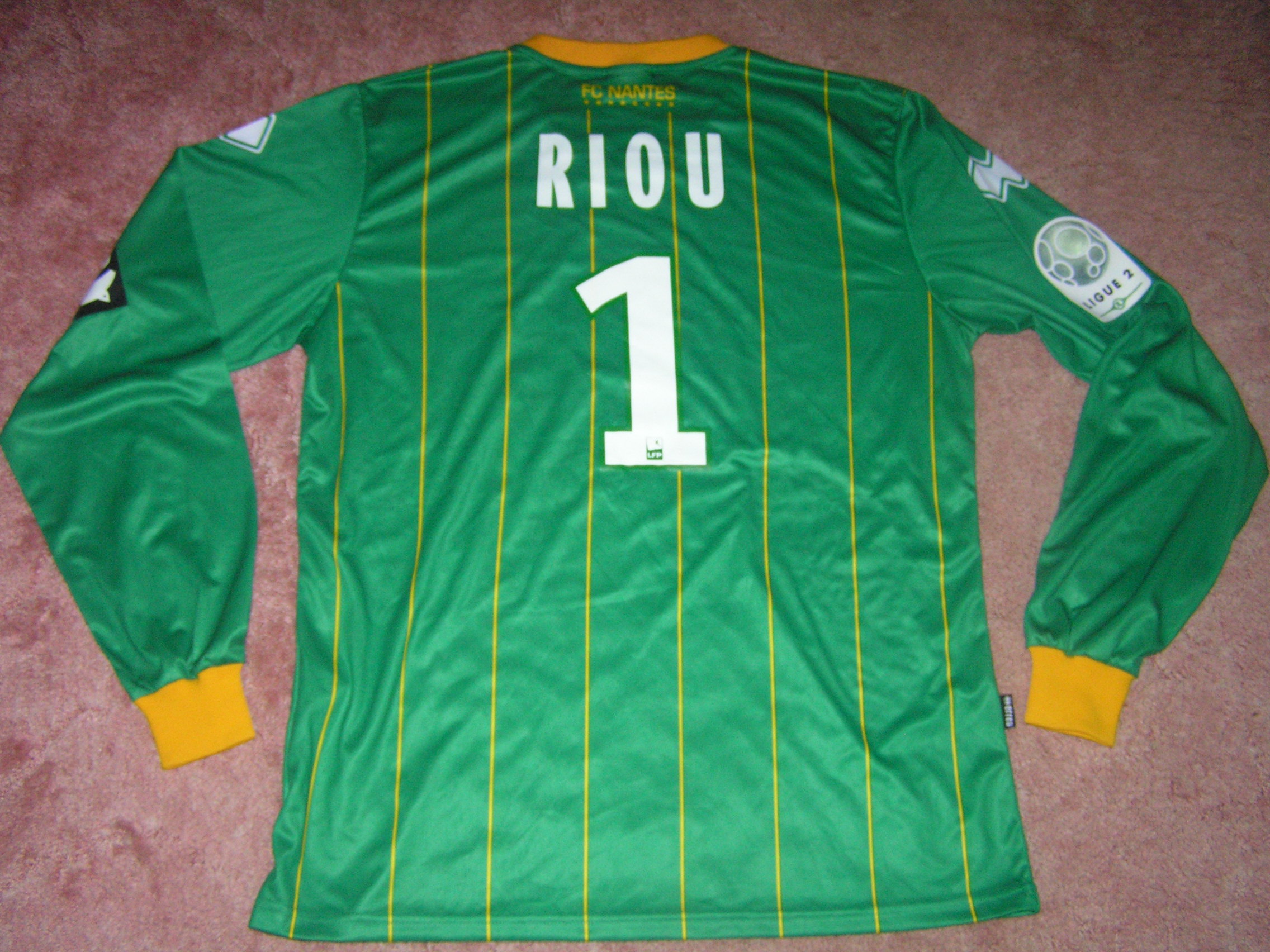 Arrière du maillot de RIOU préparé pour ARLES-NANTES, saison 2011-2012