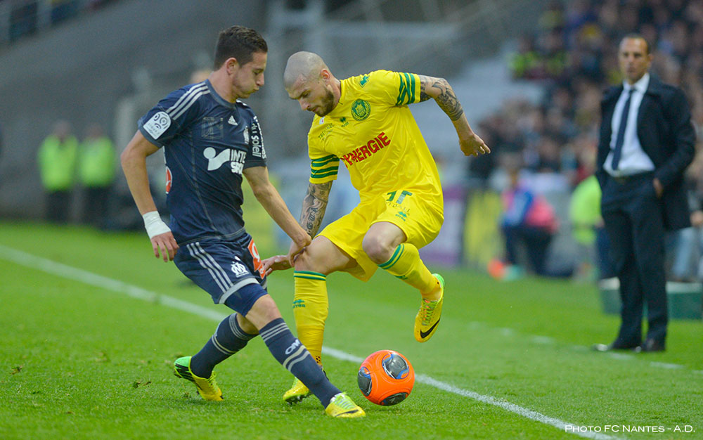 Vincent BESSAT, qui porte le maillot, en action de match lors de la rencontre NANTES-OM, saison 2013-2014