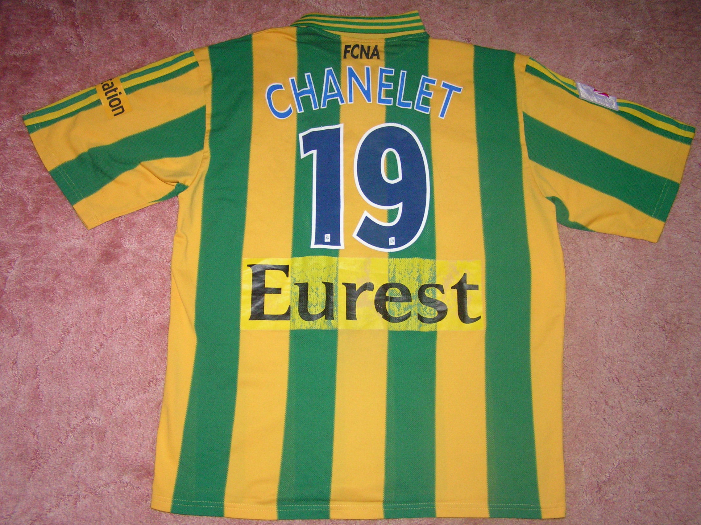 Arrière d'un maillot porté par CHANELET avec le FC NANTES, lors de la saison 1997-1998