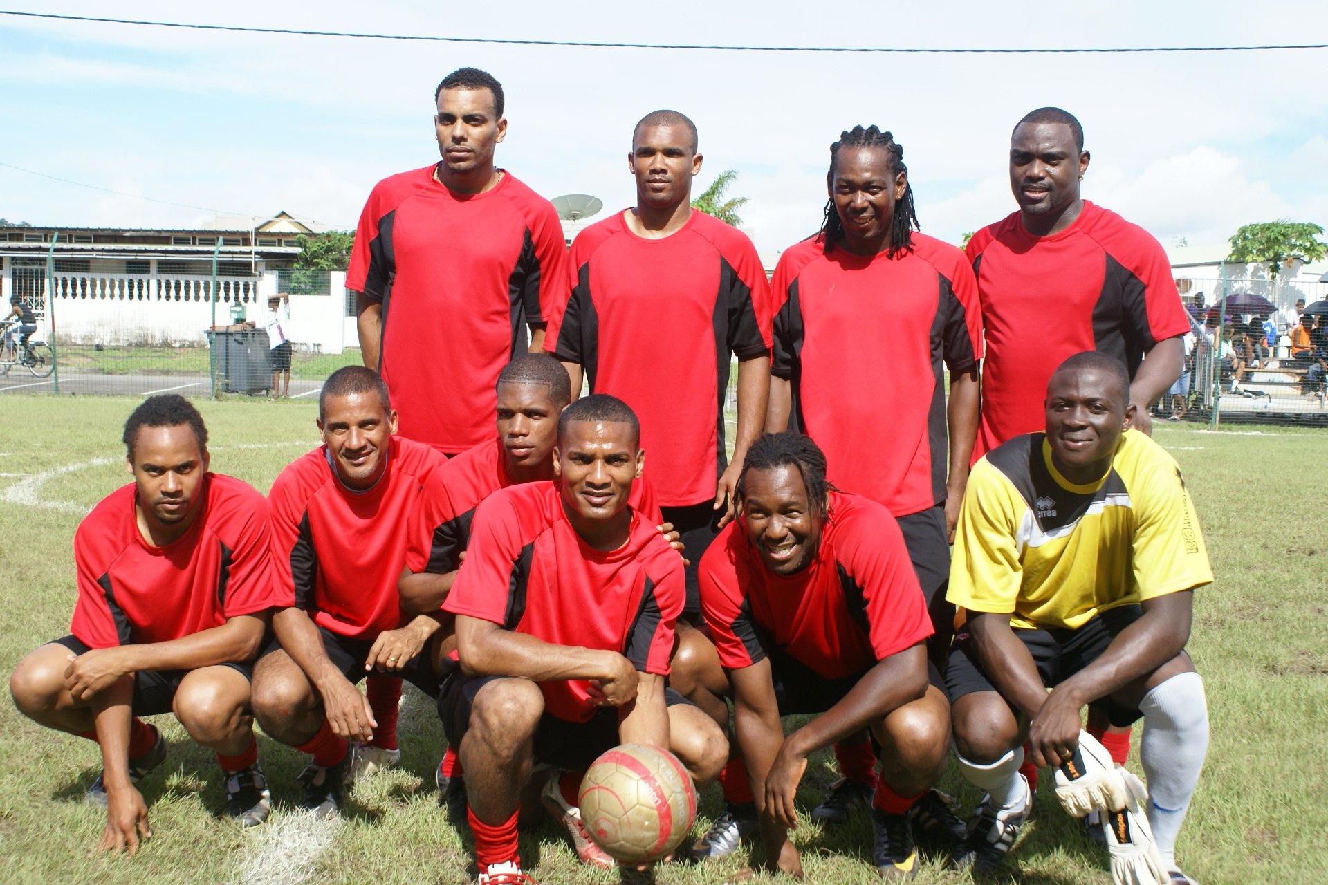 En bas, e gauche à droite : Roy CONTOUT, Thierry DE NEEF, Ludovic BAAL, Florent MALOUDA, Claude DAMBURY, Laurent PETCHY