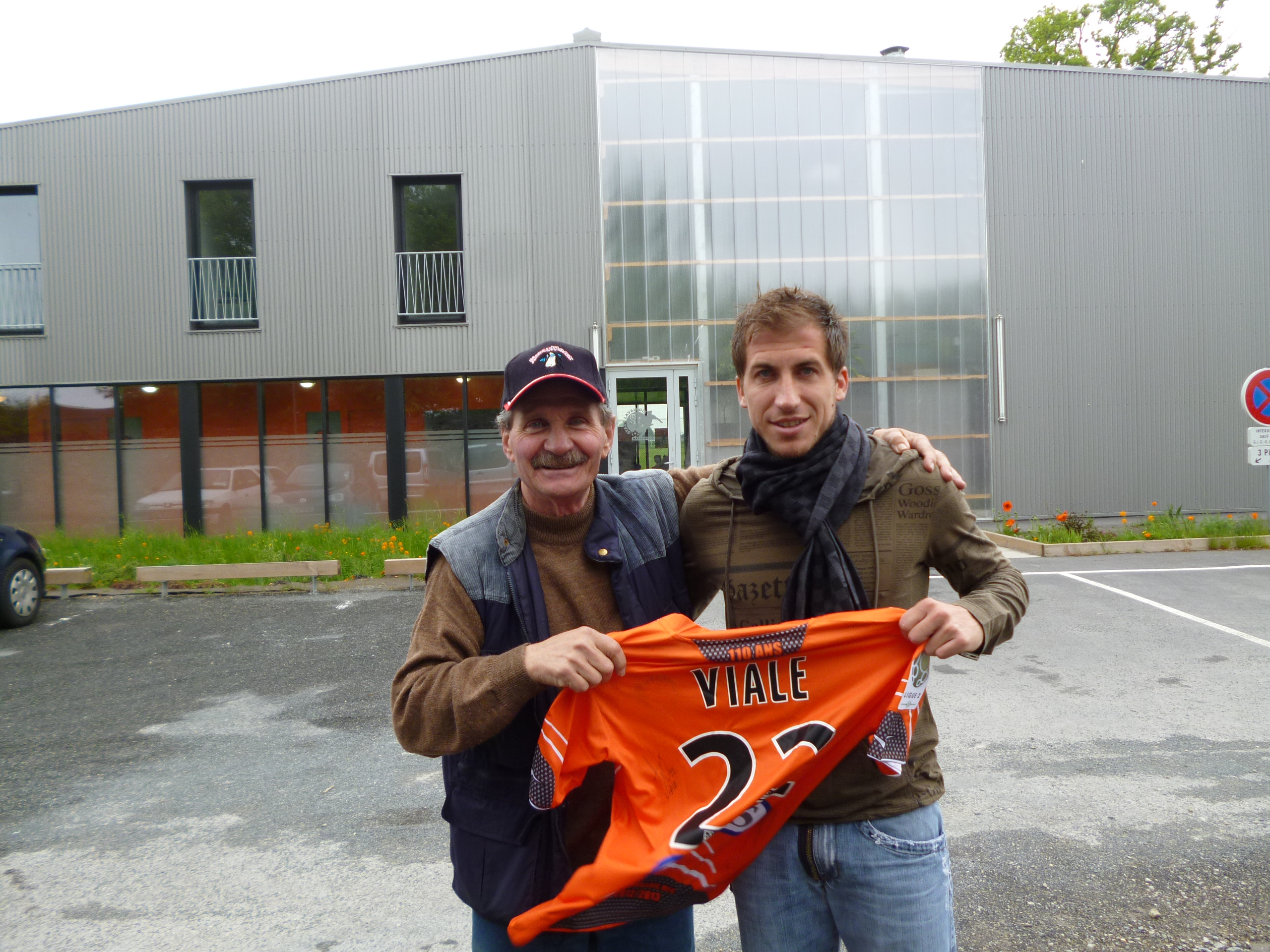 Julien VIALE qui remet à mon père, son maillot après l'avoir signé