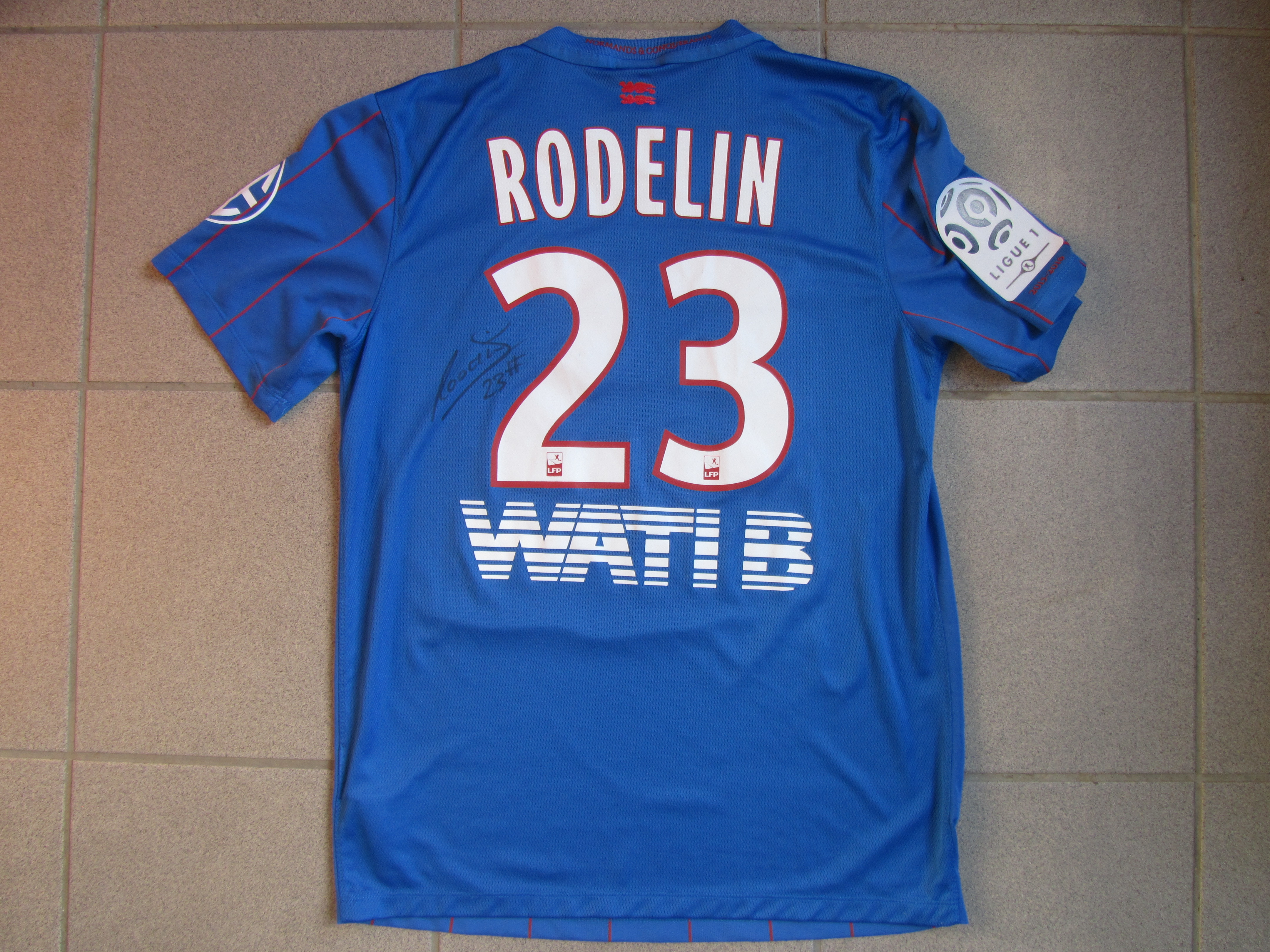 Arrière du maillot de Ronny RODELIN porté lors de la rencontre CAEN-RENNES, championnat de ligue 1 : 2015-2016