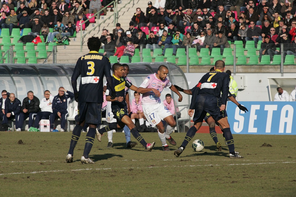 Les joueurs nantais en action de match lors de la rencontre EVIAN-NANTES, saison 2010-2011