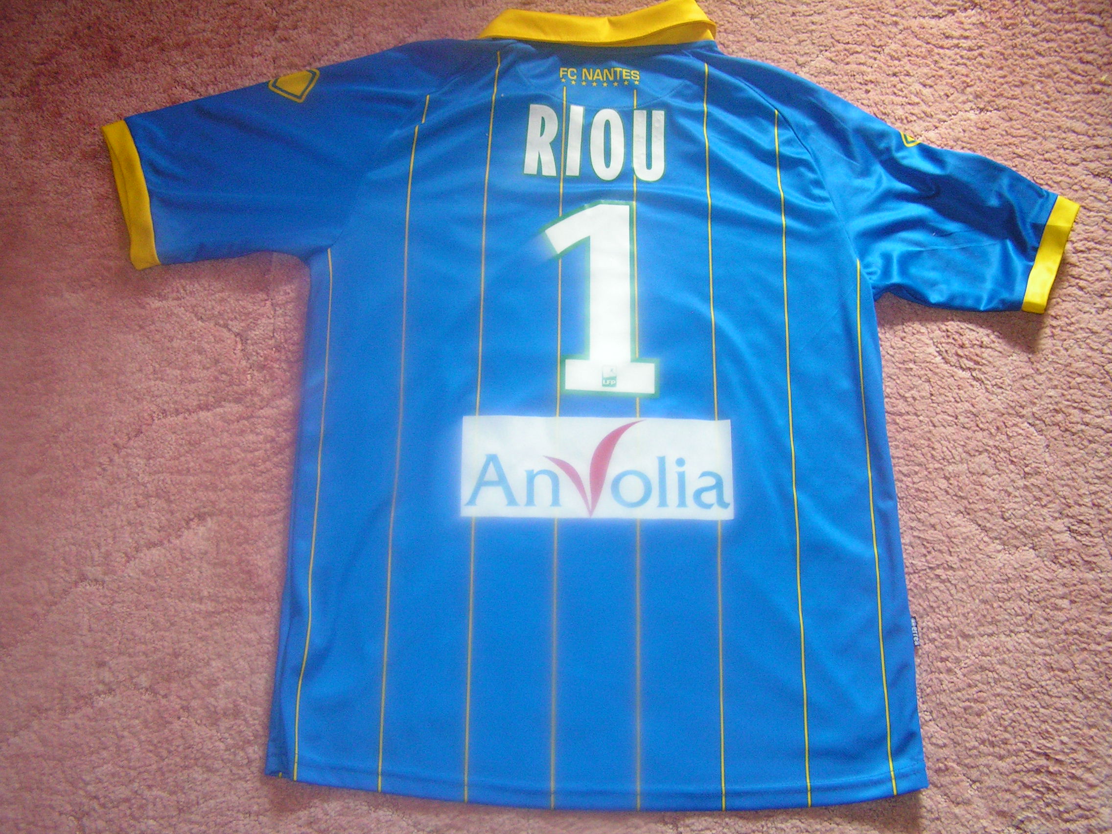 Arrière du maillot porté par RIOU lors de la rencontre AUXERRE-NANTES, saison 2012-2013